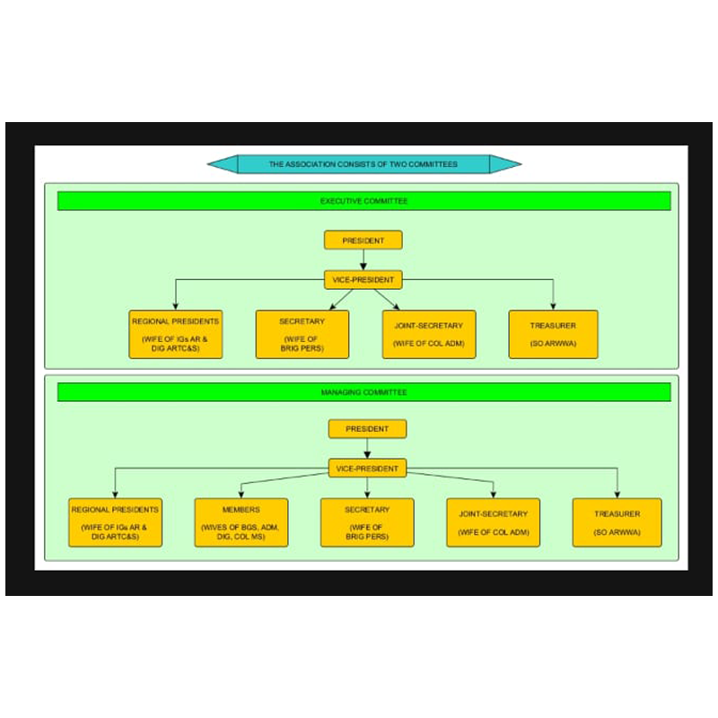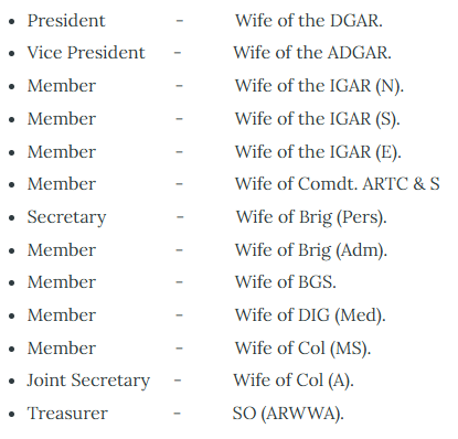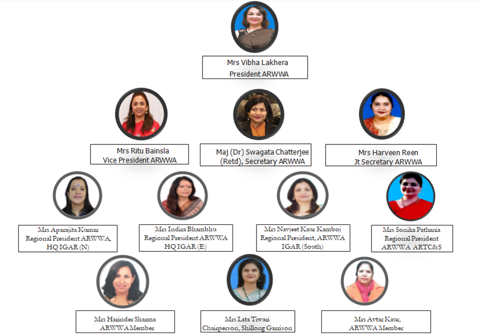 An ARWWA Conference will be held twice in a year along with AR Commander’s Conference at HQ DGAR, Shillong. The managing committee will review the activities carried out and also decide on the broad guidelines for future progress of ARWWA activities in the following year.